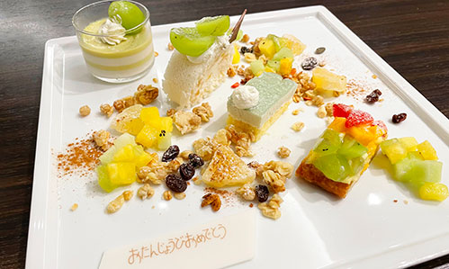 ※デザートプレートのメッセージは、既定の「お誕生おめでとう」のみとなり、お名前をお入れする事はできません。